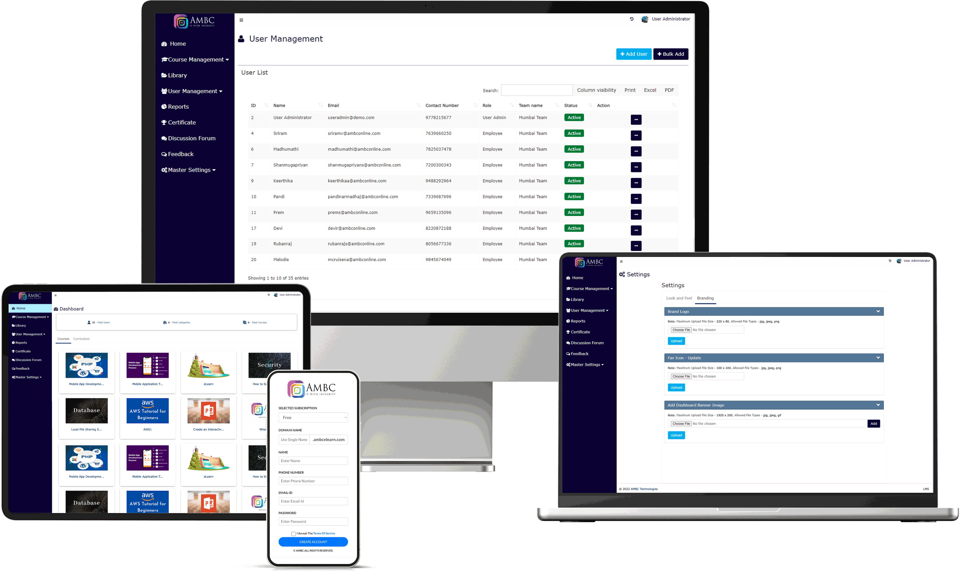 We can migrate all the data from your existing LMS and can be used in AMBC eLearn. Once all the data is migrated, there will be no dependency on your previous LMS, and AMBC eLearn will work independently.